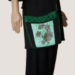 It is delightful to see a tortoise and her three babies roaming together in fresh green waters of the sea. A crossboby in the Madhubani style.